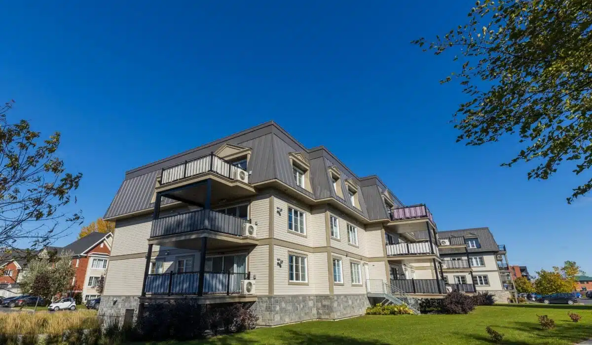 Pose de membrane élastomère sur une toiture plate pour un projet de multiplex à Mont-Saint-Hilaire