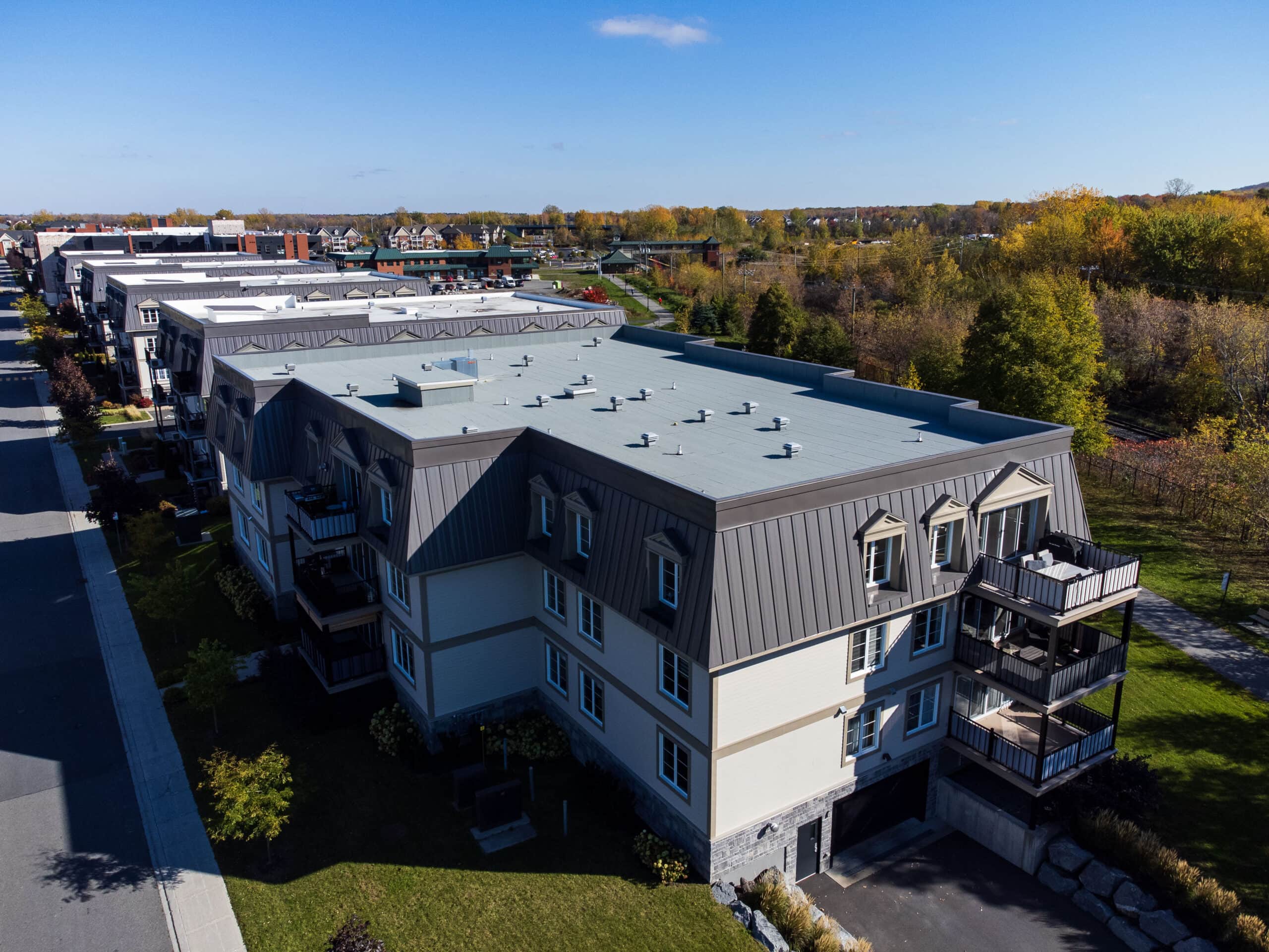 La membrane TPO est de plus en plus populaire pour les bâtiments commerciaux et publics de Candiac. Sa surface blanche réfléchissante diminue l’absorption de chaleur, réduit les dépenses de climatisation et prolonge la durée de vie du toit.